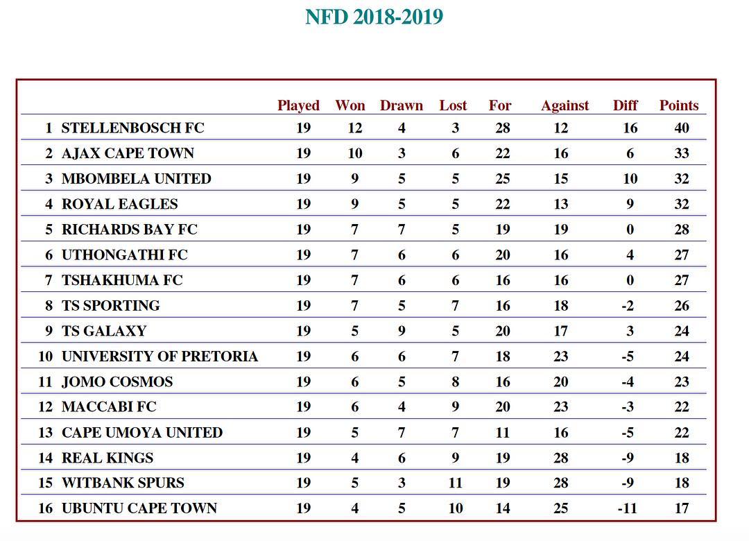 Current National First Division log. #choiceofchampions #sfc #stellenboschfc #sashp #stellenbosch…