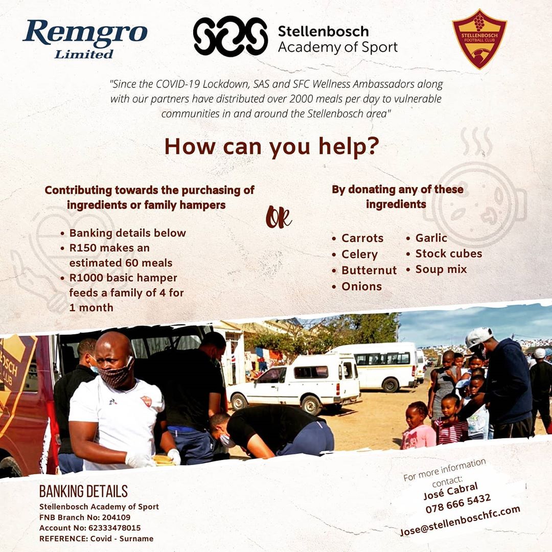 @sas_hp and #StellenboschFC together with our partners have managed to distribute over 2000 meals per day since the beginning of lockdown.