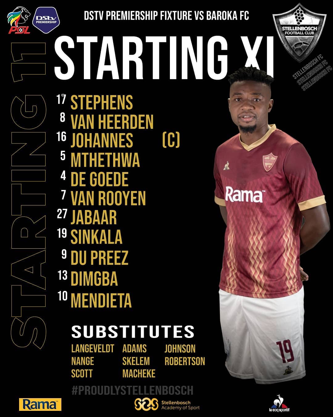 Introducing our Starting XI to take on Baroka FC this afternoon. #StellenboschFC #ProudlyStellenbos…