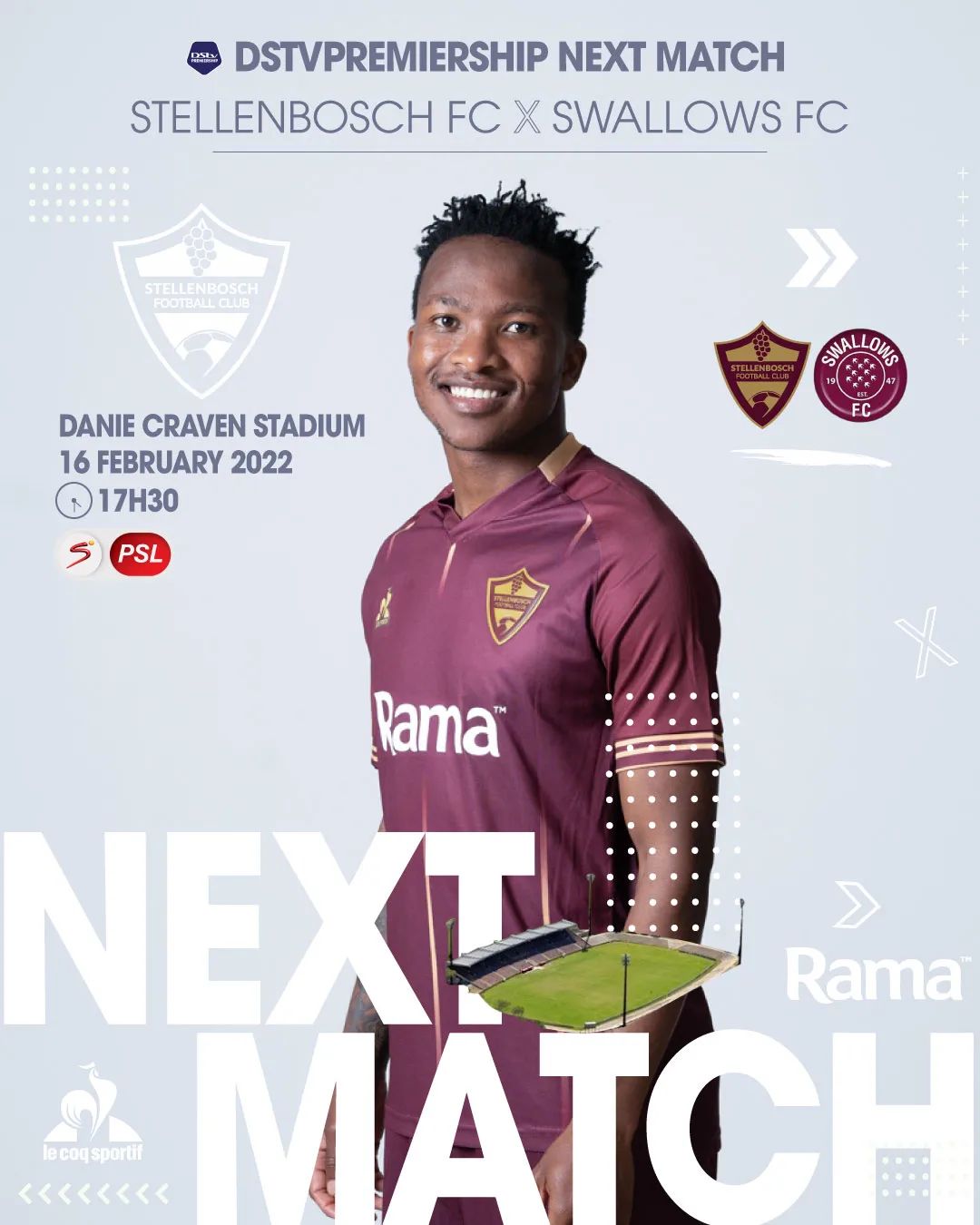 ๐๐๐ญ๐ฉ ๐๐๐ฉ๐๐ #DStvPrem @moroka_swallows_fc February 16, 2022 Danie Craven Stadium 17H30 Sup…