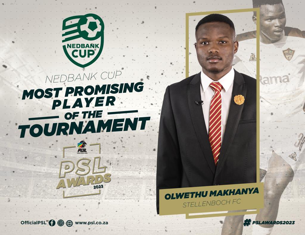 He was joined on the stage by 19-year-old defender Olwethu Makhanya who was named as the Nedbank Cup’s Most Promising Player following his impressive displays at the back for Stellies, beating teammate and fellow nominee Devin Titus to the prestigious award.